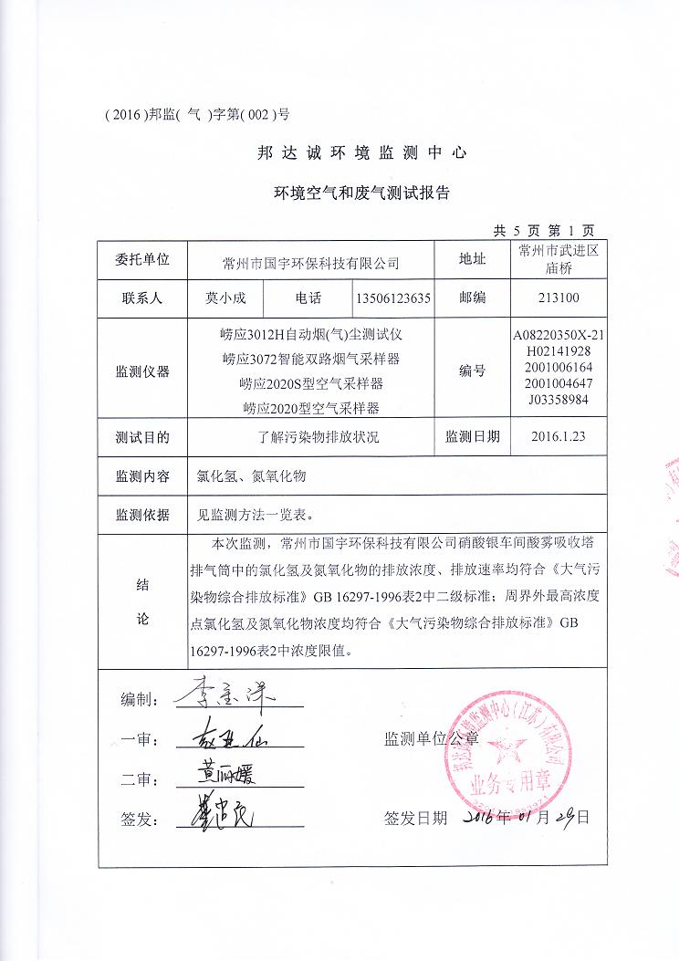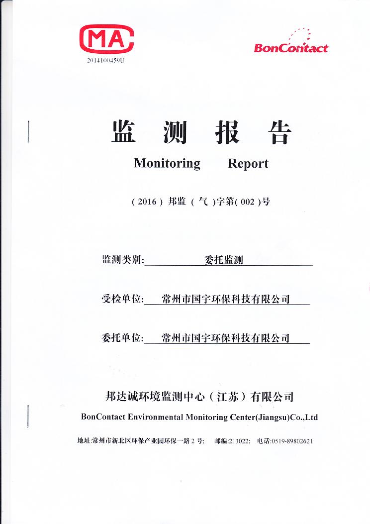 2016年常州市國(guó)宇環(huán)??萍加邢薰練獗O(jiān)測(cè)報(bào)告網(wǎng)上公示