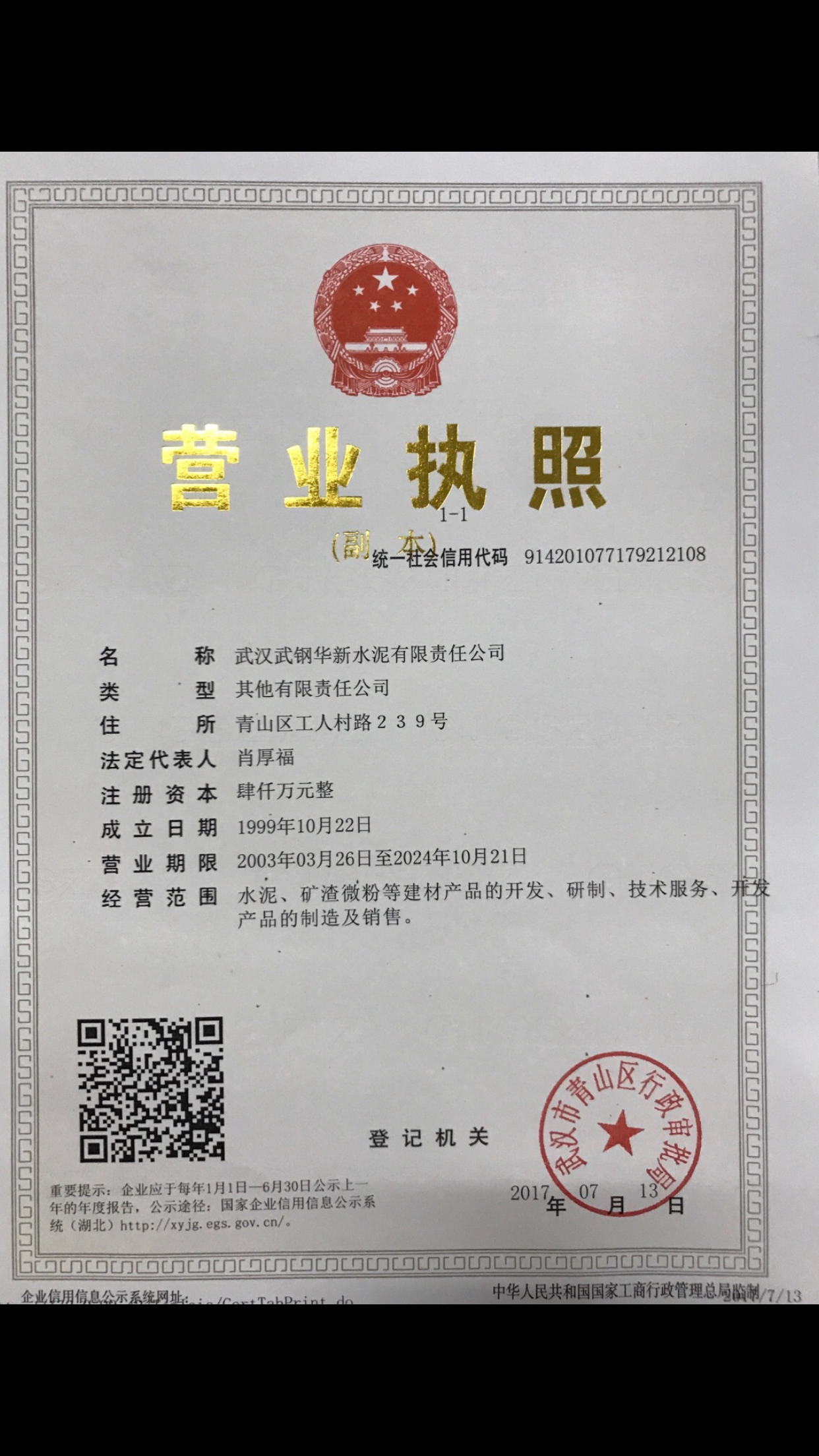 武漢武鋼華新水泥有限責(zé)任公司環(huán)保資質(zhì)